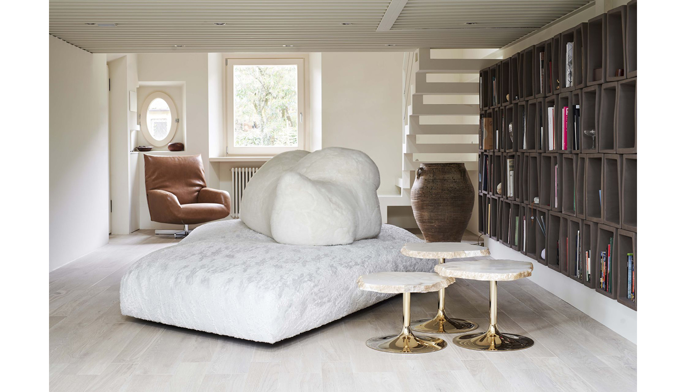 Edra is known for its experimental approach to comfort and scientific material research. The Pack model, created by Francesco Binfaré in 2017, is an installation inspired by wild nature and climate change.