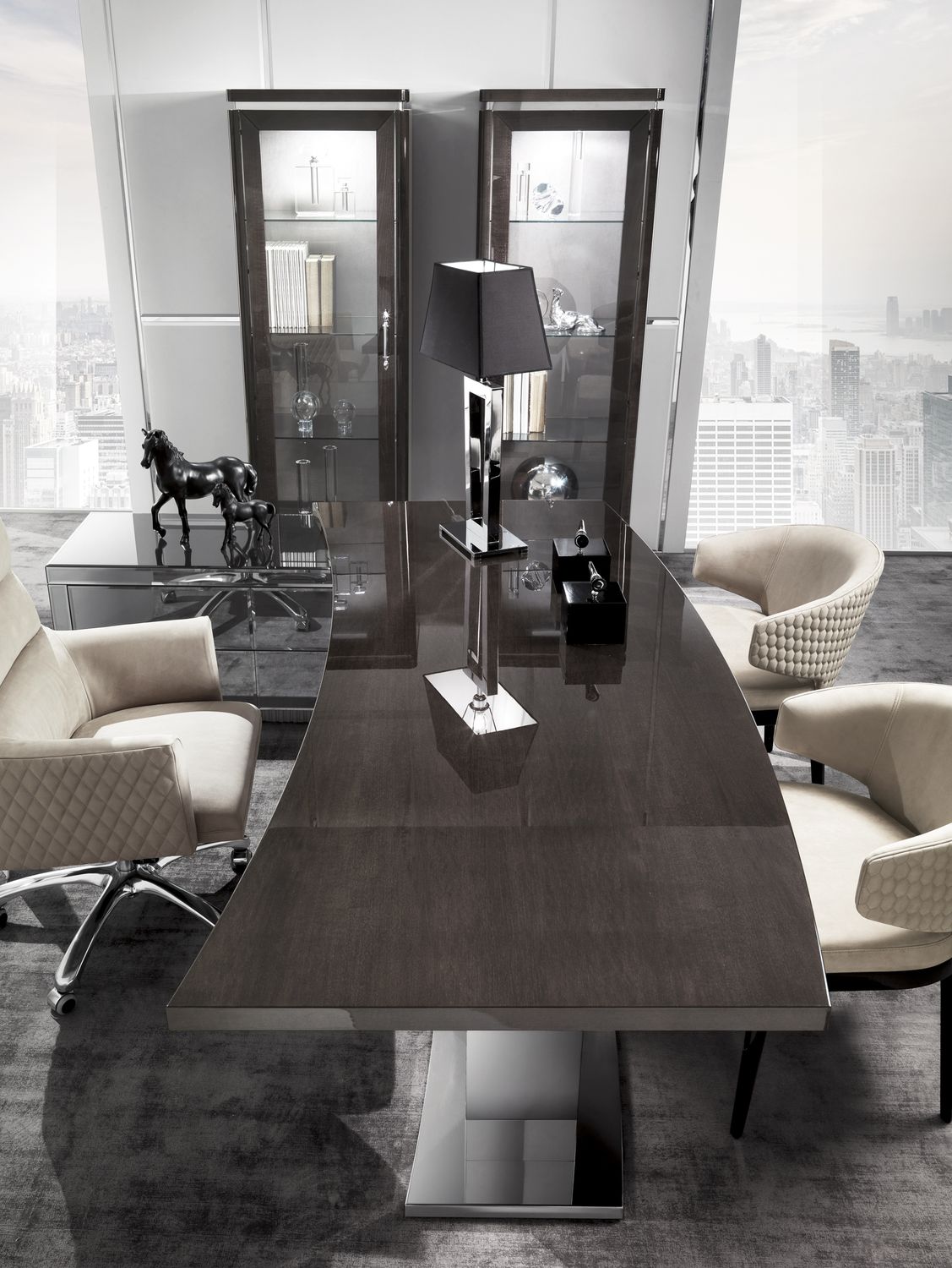 The Windsor writing desk by DV Home Collection is an exceptional model featuring a lightweight design. Its 2.2-meter-wide tabletop is slightly concave, providing the user with enhanced comfort compared to standard desks.